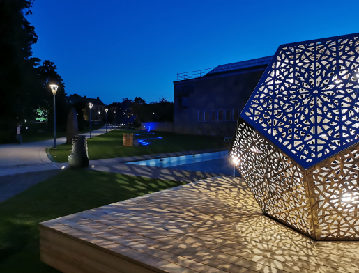 Länskonstkonsulent Lena Wiklund tar dig med på en visning genom parken utanför museet och berättar om de senast tillkomna konstverken där – Bäcken av konstnärskollektivet Kultivator och Femte Elementet av Raha Rastifard.